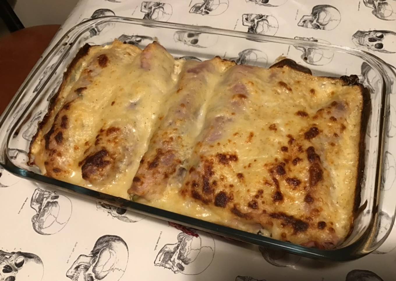 Gratin de jambon aux côtes de chou romanesco,sauce fromage et parmesan (anti gaspi)